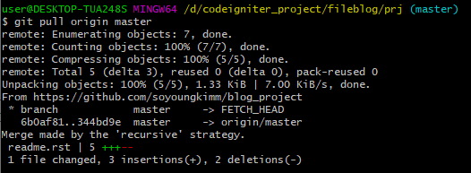 을 하여 원격저장소에서 내 로컬에 저장하지 않은 파일을 pull한다.