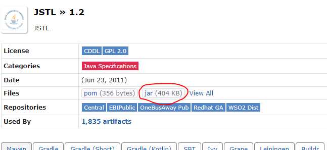 https://mvnrepository.com/artifact/javax.servlet/jstl/1.2