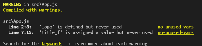 react 터미널 창에 뜨는 waring 없애는 법 본문