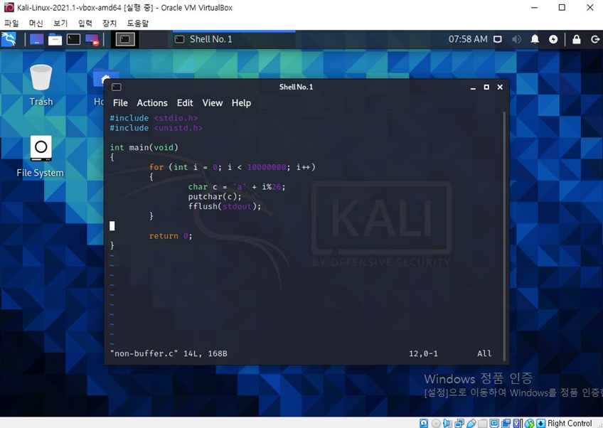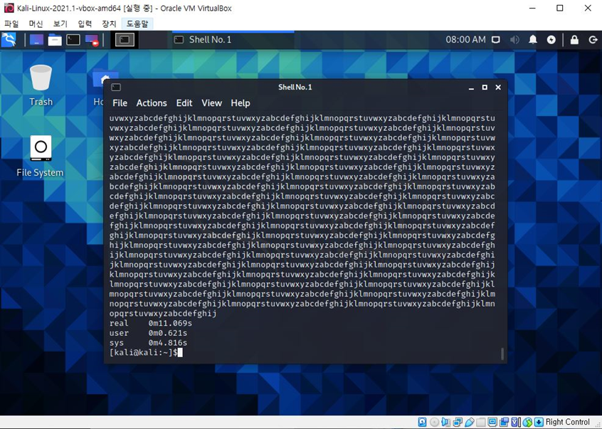 버퍼링 기법을 쓰지 않았을 때는 약 11초가 나왔는데 버퍼링 기법을 썼을 때는 약 1초가 나왔다.