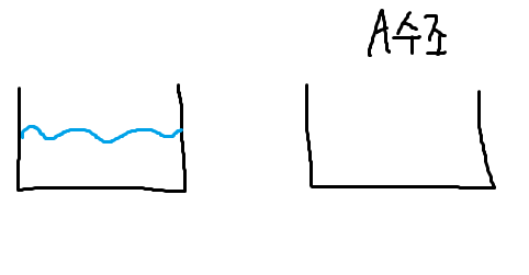 커다란 수조의 물을 A 수조에 모두 옮겨야한다.