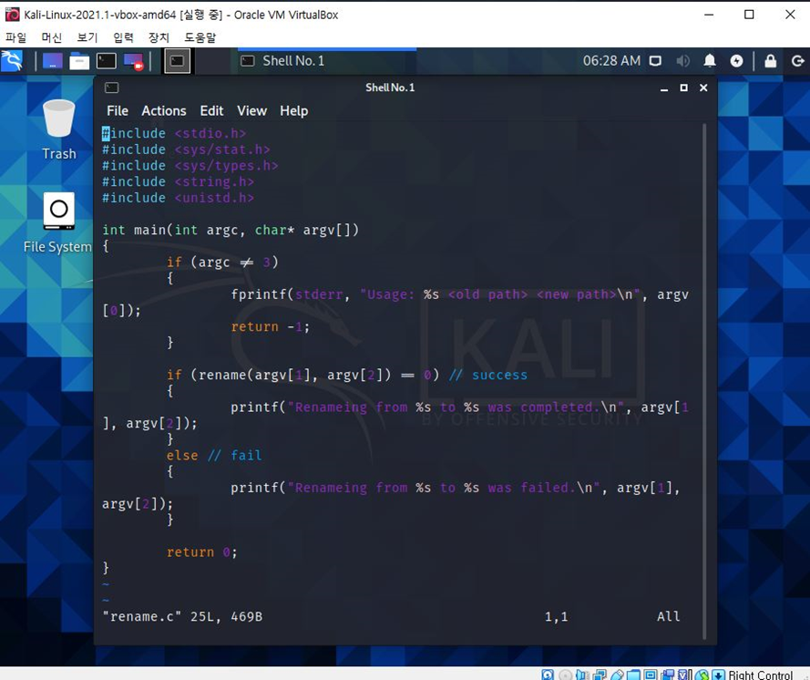 지정한 디렉토리를 새 이름으로 변경하는 함수