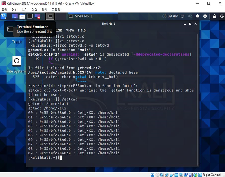 getwd의 경우 내부 정적 공간을 사용한다.