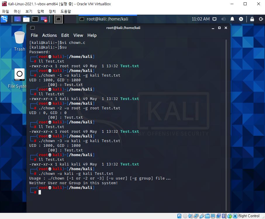 fchown(fd, stPasswd->pw_uid, stGroup->gr_gid); // pFile의 사용자 id, 그룹 id를 변경
