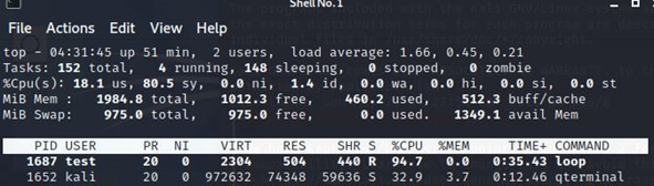 loop 프로세스가 실행되는 모습을 top 명령어를 통해 보았다.