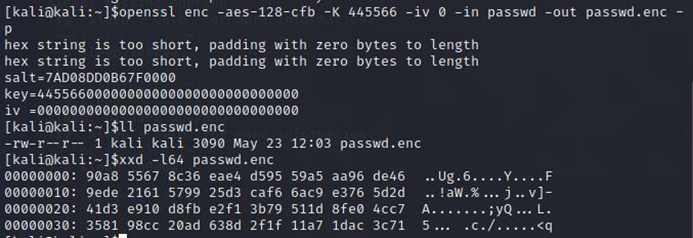 Openssl을 이용해 비밀번호 445566을 AEC 암호화했다.