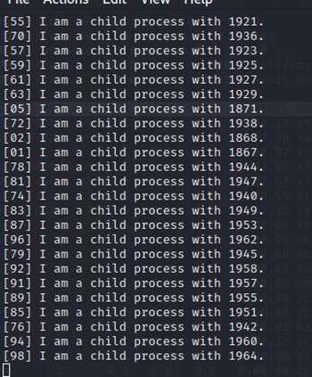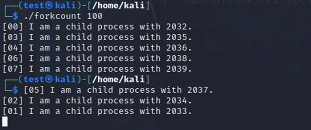 ./forkcount 100을 하면 아래 이미지와같이 프로세스가 100개가 생기는데, test계정의 프로세스 개수를 10개로 제한해서 위 이미지과 같이 생기고 멈춘다.