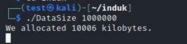 메모리에 할당할 데이터 사이즈를 1000000kb로 정했으나 할당할 수 있는 메모리 크기를 최대 10메가로 정했기 때문에 10006kb만 할당되었다.
