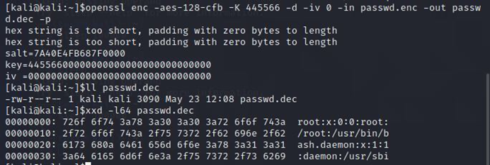 암호화한 내용을 다시 복호화 했고, 복호화를 함으로써 passwd.dec파일이 생겼다.