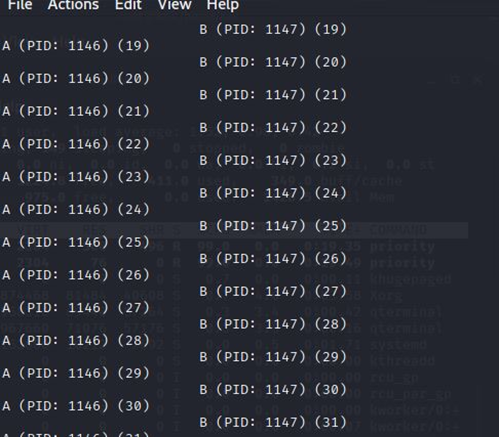 그 결과 부모 프로세스는 원래 기본 우선 순위인 20 - 20해서 0순위가 되어 가장 우선순위가 높게 되었고, 자식 프로세스는 20 + 10해서 30이 되어 우선 순위가 전보다 더 낮아졌다.