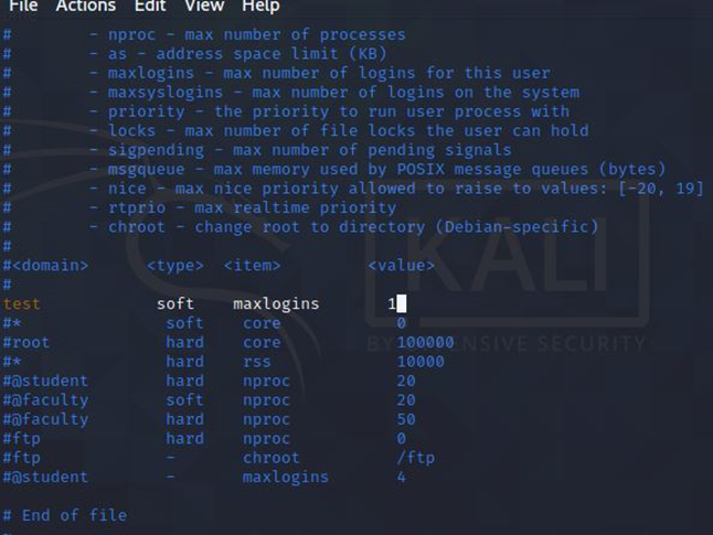 /etc/security/limits.conf를 통해 test 계정의 최대 로그인 개수 1개로 제한했다.