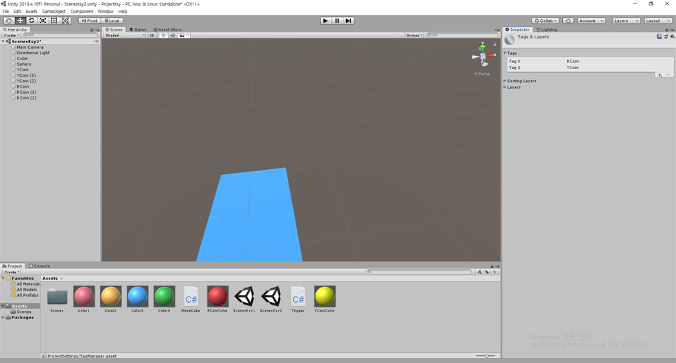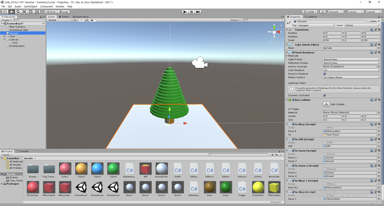그리고 땅 역할을 하는 큐브의 이름을 Ground라 변경해준다.