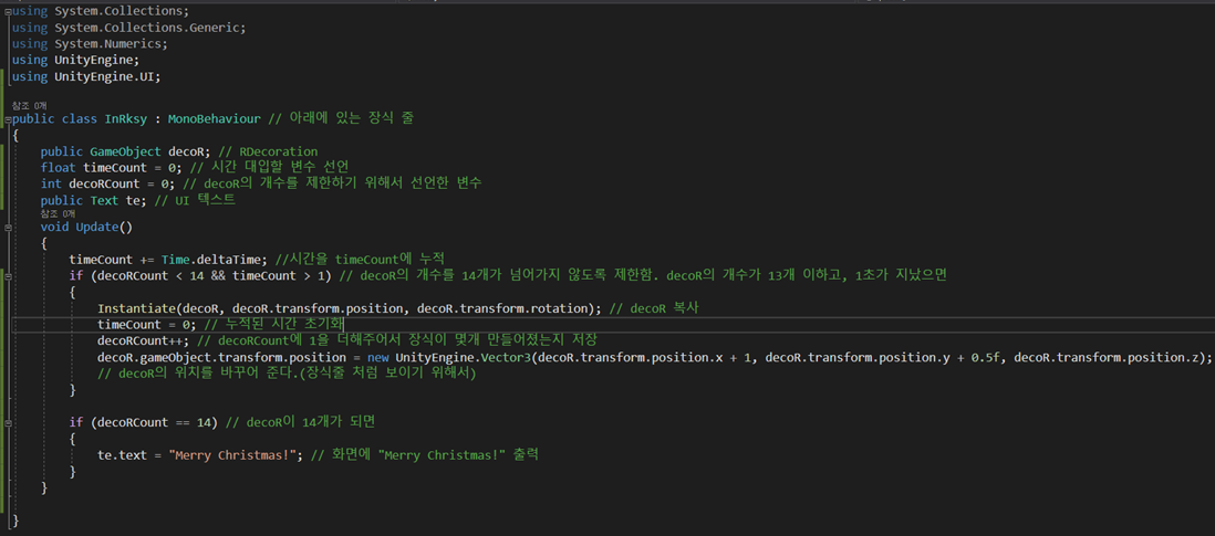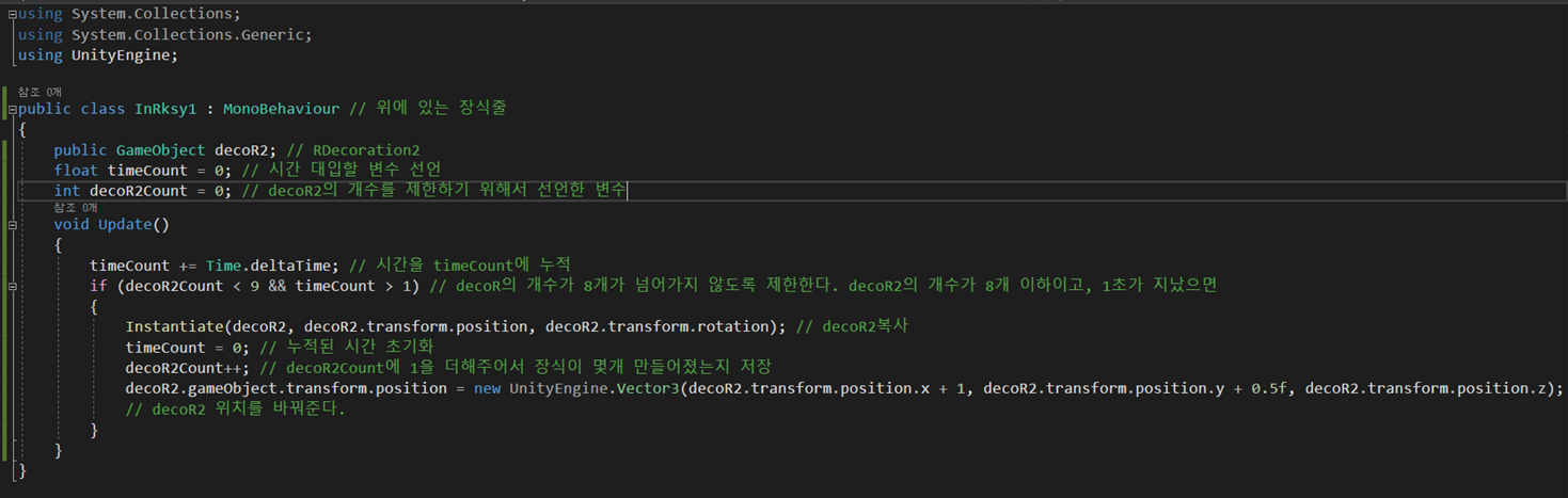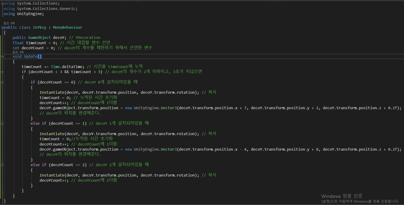 위치를 Rdecoration(-8, 11.7, -8.8), Ydecoration(-4.6, 16.8, -5.2)로 놓는다.