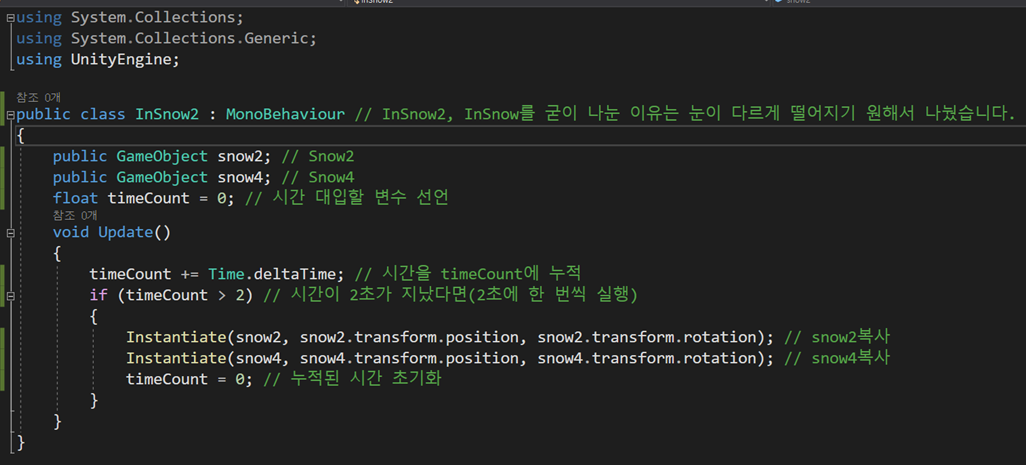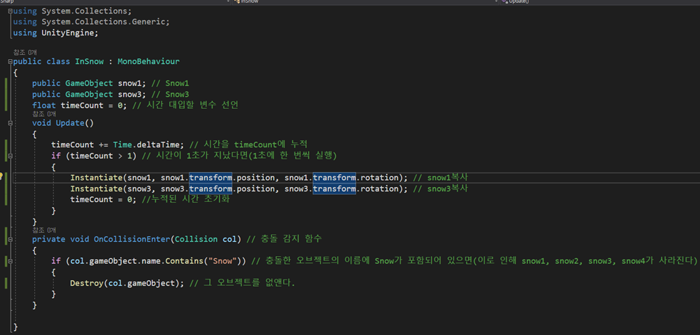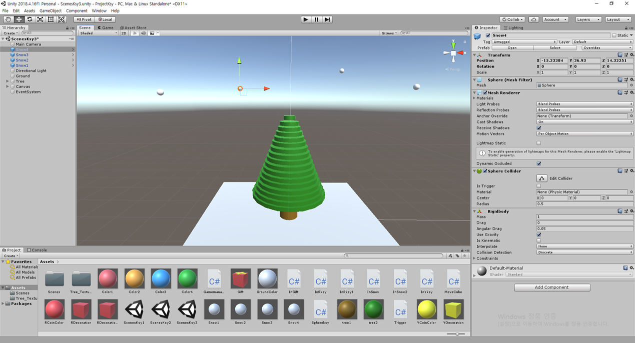같은 방법으로 Snow2, Snow3, Snow4도 만든다.
