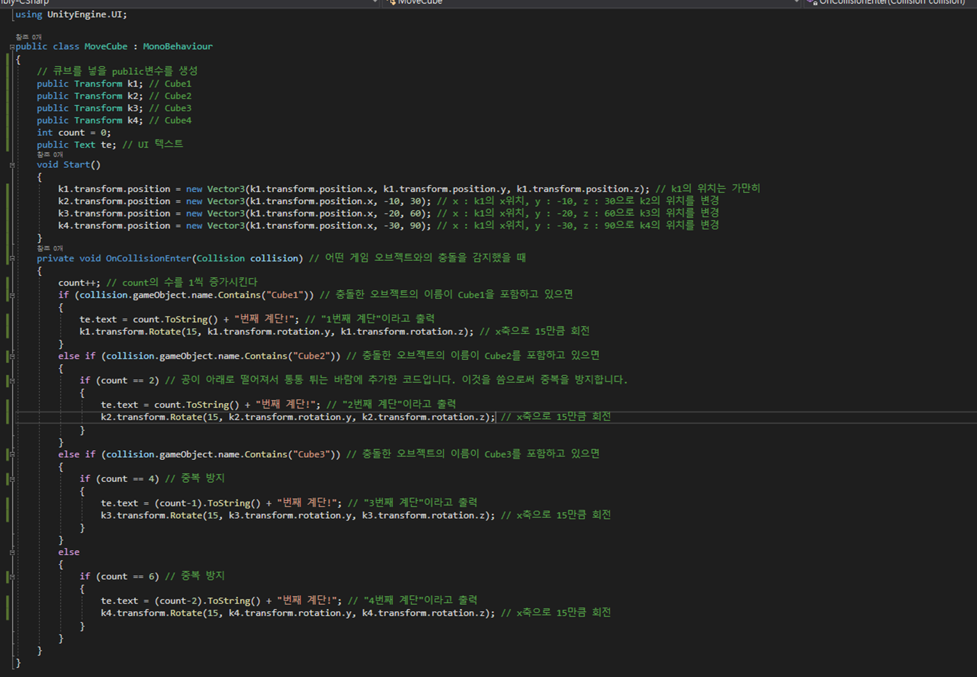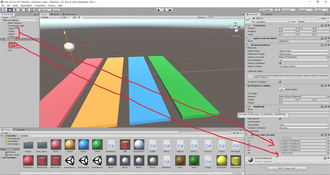 Move Cube스크립트를 Sphere에다 드래그 앤 드롭하여 넣고,