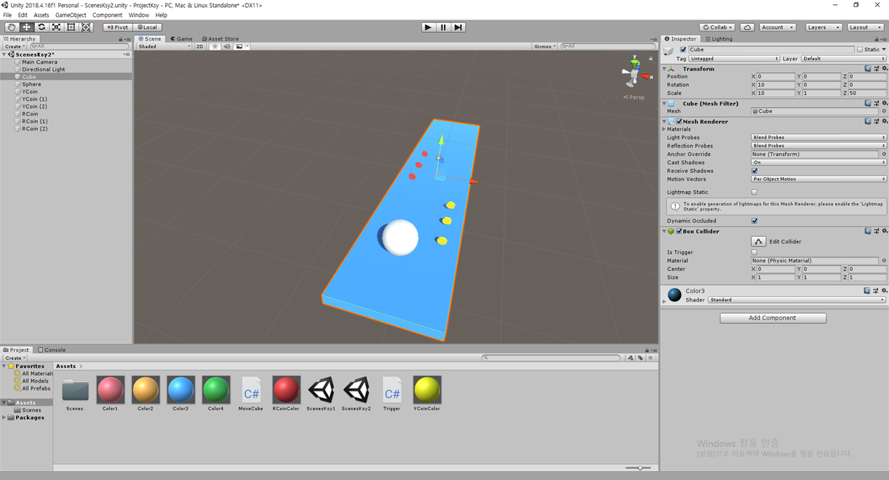 공이 떨어졌음을 알리기 위해 큐브 하나를 만든다.