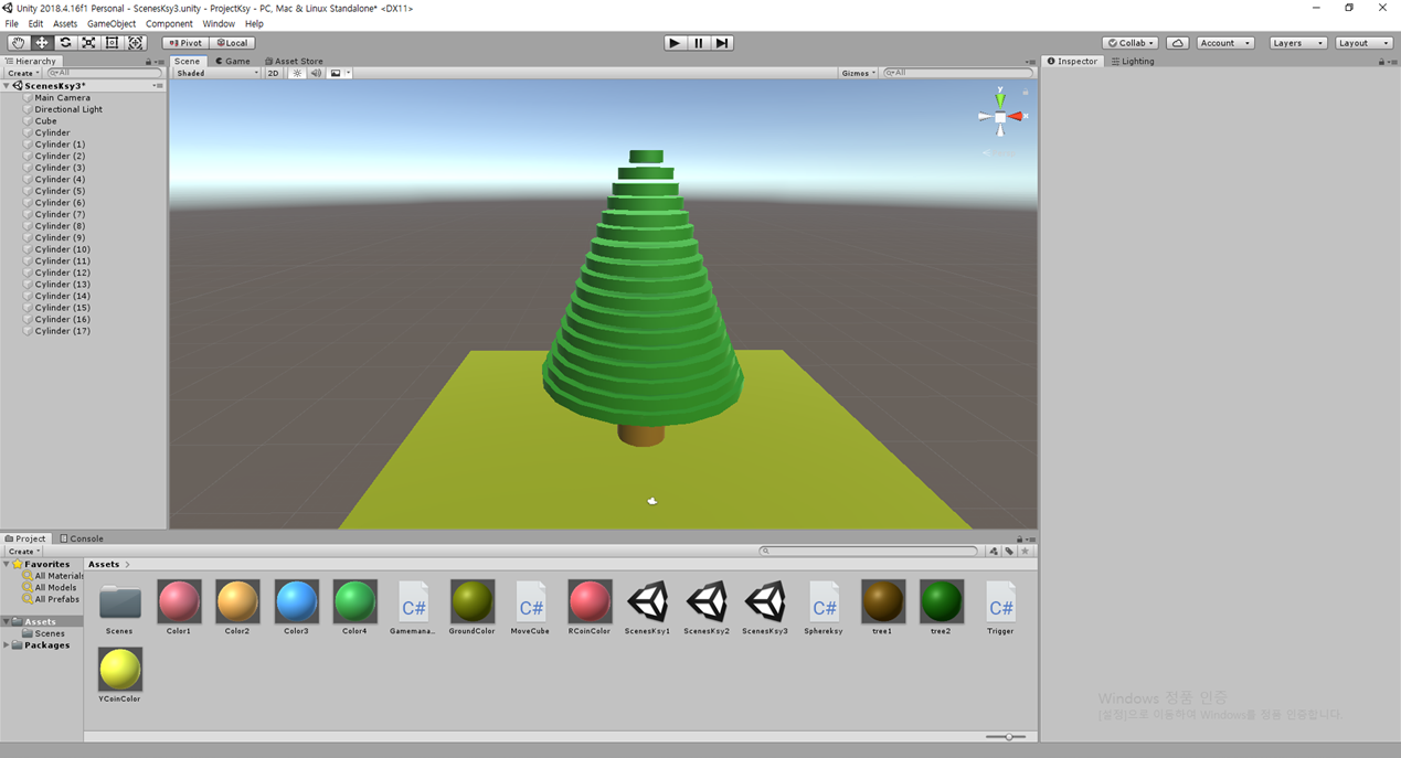 이어서 Cylinder을 이용하여 나무의 가장 밑단을 만든다.