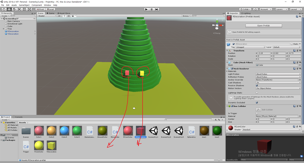 Rdecoration2도 Rdecoration과 같은 방법으로 만들어 Project창으로 드래그해서 Prefab으로 만든다.