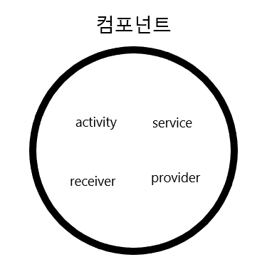 <activity>, <service>, <receiver>, <provider> 가 들어있다.