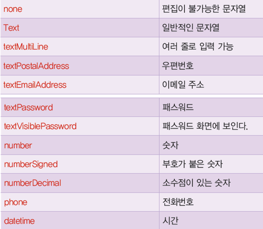editText inputType 속성 값