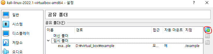 1. kail linux를 키고 상단 바에 입력 -> 공유폴더 -> 공유폴더 설정