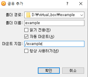 이렇게 하면 window(내 컴퓨터)의 virtual_box \ example 폴더와