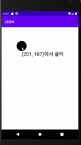 canvas.drawText("(" + x + ", " + y + ")에서 클릭", x, y + 100, paint);