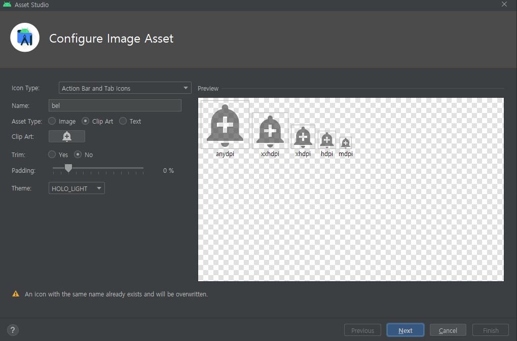 1. drawable 마우스 오른쪽 new -> Image Asset