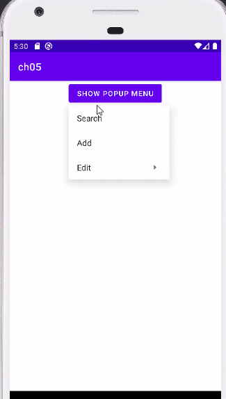 뷰에 부착된 모달 메뉴(modal menu)를 팝업 메뉴라 한다.