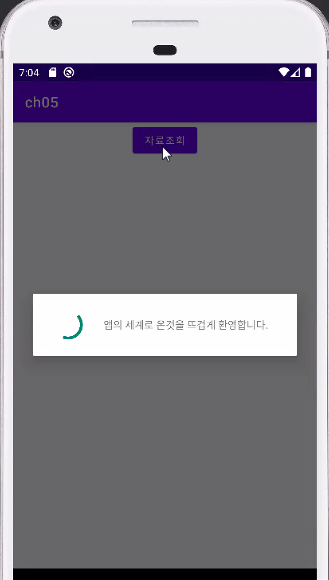 progressDialog.setMessage("앱의 세계로 온것을 뜨겁게 환영합니다.");