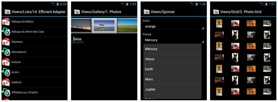 리스트 뷰(ListView), 갤러리(Gallery), 스피너(Spinner), 그리드 뷰(GridView)
