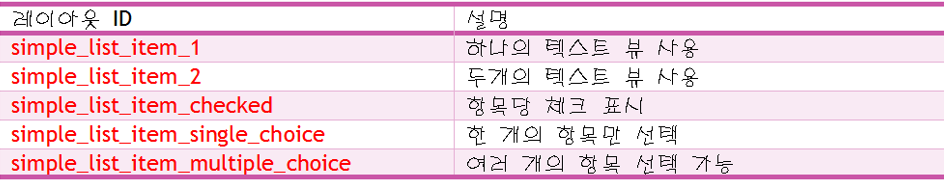 어댑터 뷰(AdapterView)는 배열이나 파일, 데이터베이스에 저장된 데이터를 화면에 표시할 때 유용한 뷰