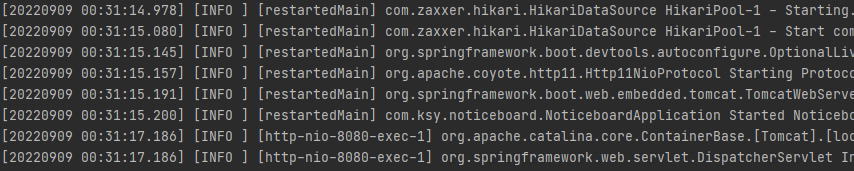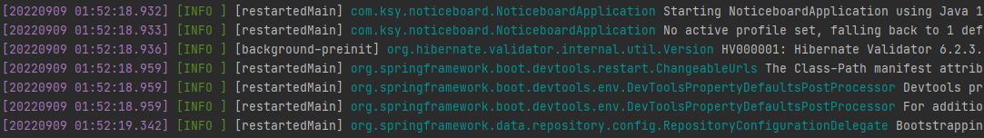 spring에서 기본적으로 적용됐던 로그 색상이 사라졌다.