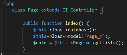 이렇게 하면 php가 models 아래에 있는 page_model.php를 읽어서 그 안의 Page_model class를 로드한다.
