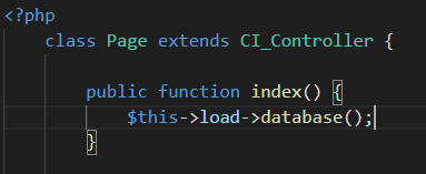 controller 객체 안의 CI_Loader 클래스 객체(load) 안의 database()라는 메서드를 사용하겠다는 뜻이다.