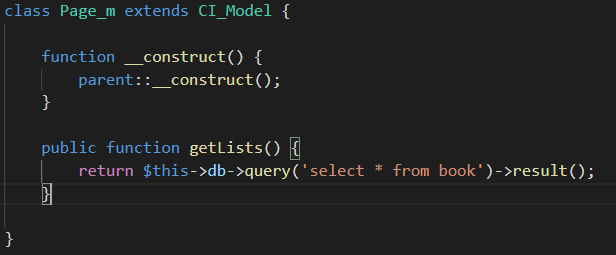 Page_m class는 CI_Model class를 상속받았기 때문에 생성자를 호출할 때 CI_Model class의 생성자를 호출해줘야 한다.