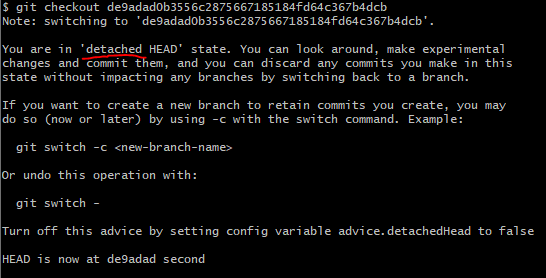 두번 째 commit의 주소를 복사해서 checkout을 한다.