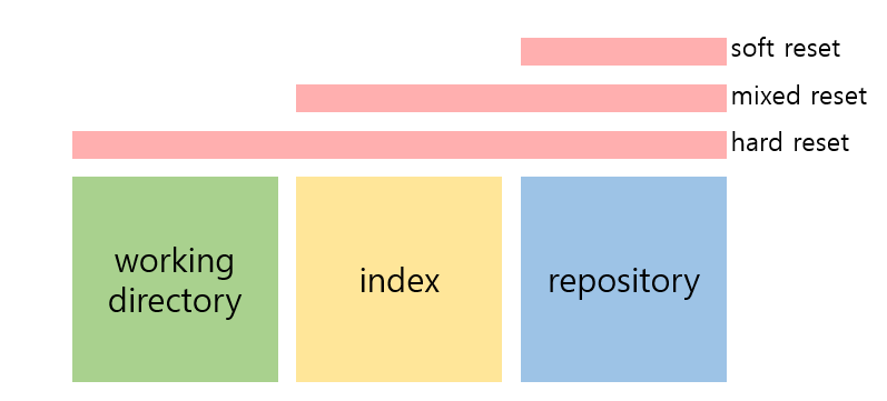 git reset --hard : repository와 index, working directory(git add하지 않은 내용들) 모두 reset된다.