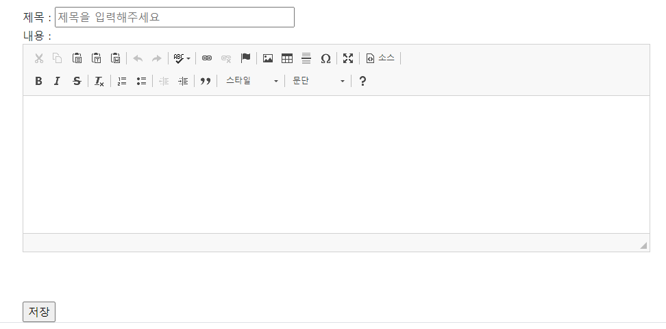 3. CKEditor을 사용할 곳에 js 파일을 로드하고, CKEditor을 화면에 가져오는 코드를 입력한다.