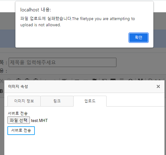 jpg, png, gif가 아닌 파일을 업로드하려고 하면