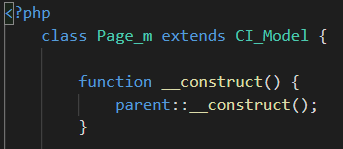 Page_m class는 CI_Model class를 상속받았기 때문에 생성자를 호출할 때 CI_Model class의 생성자를 호출해줘야 한다.